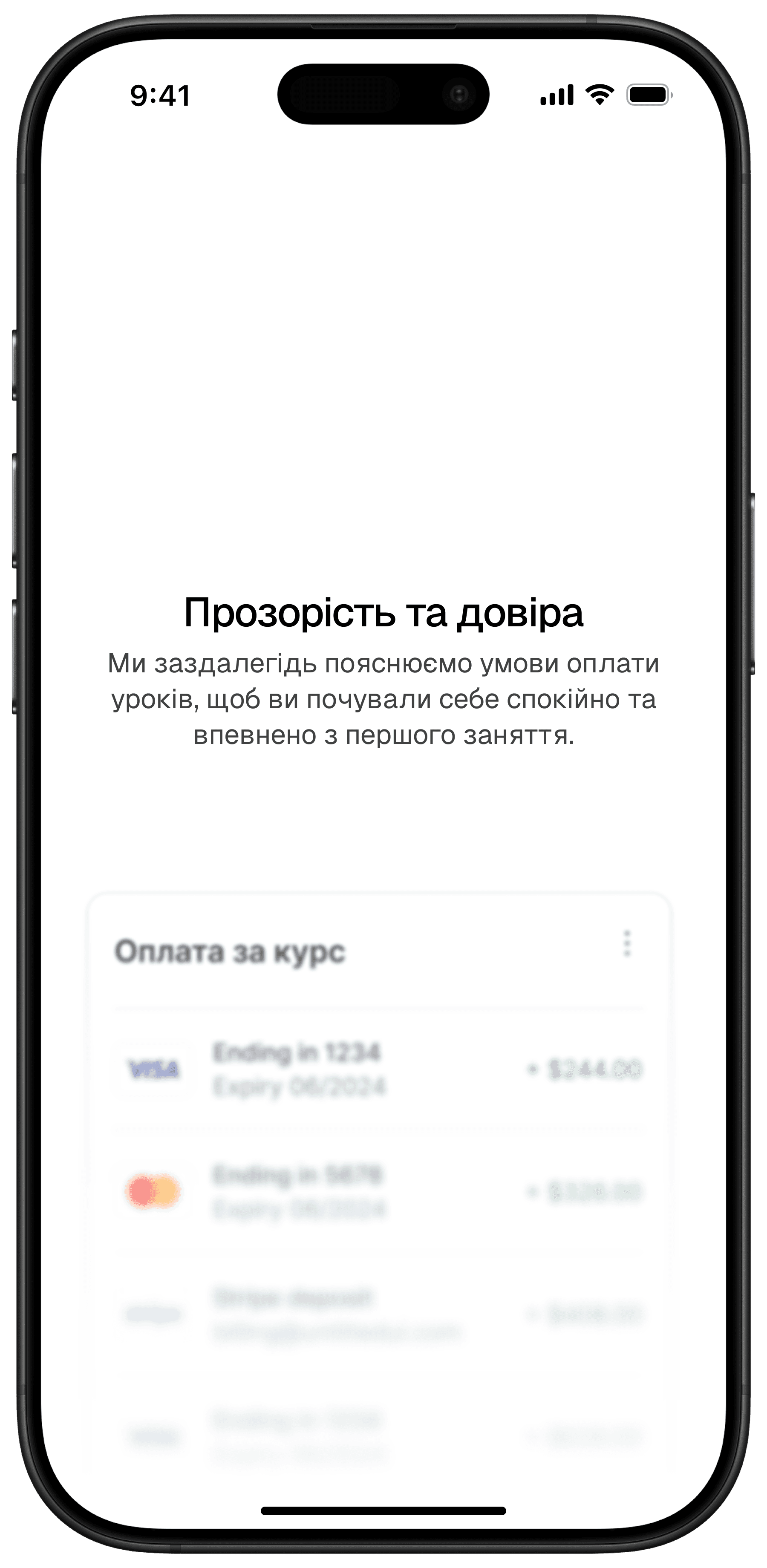Для індивідуальних уроків перше заняття оплачується окремо, щоб ви могли оцінити свою сумісність з викладачем.